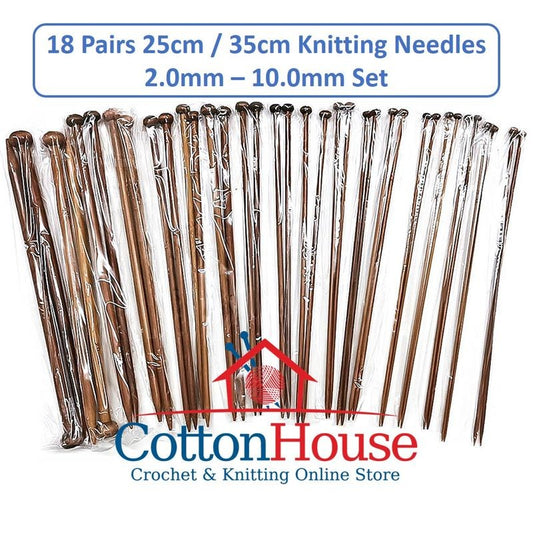 18 Pairs 25cm 35cm Bamboo Knitting SP Needles Set 2.0mm-10.0mm Short Long Jarum Kait