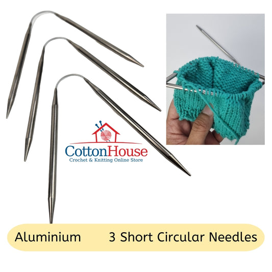 3 pcs Aluminium Trio CN 23cm ~9.5" Set Circular Knitting Needles Jarum Kait Single Size to replace DPN