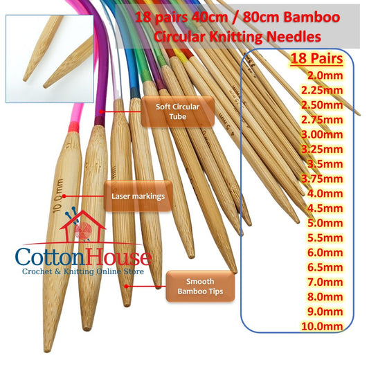 18 pcs Bamboo CN 40cm 60cm 80cm 120cm Circular Knitting Needles Set Jarum Kait