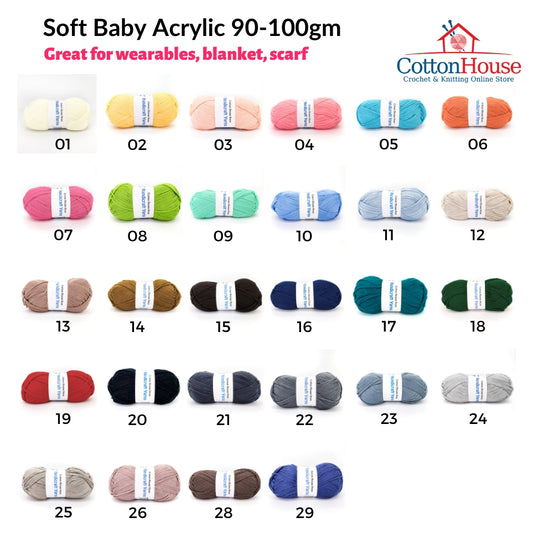 Soft Baby Acrylic 90-100g 2mm Benang Kait Yarn SBC