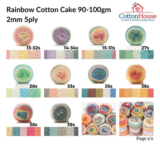 Rainbow Cotton Cake 100g 2mm 5ply Benang Kait Yarn CCK