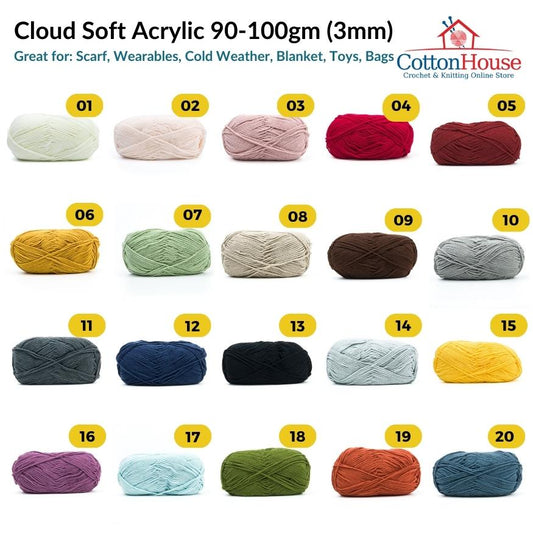 Cloud Soft Acrylic 100gm 6 ply 3mm Benang Kait Yarn CSA