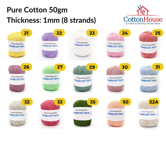 Pure Cotton 100% 1.0mm Halus Nipis 50gm Benang Kait Yarn PCN