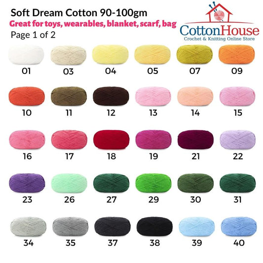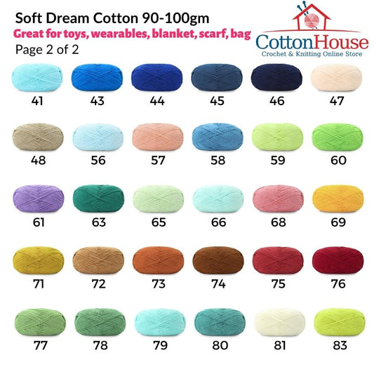 Soft Dream Cotton 100gm 2mm 5 ply Page01 Benang Kait Yarn SDC